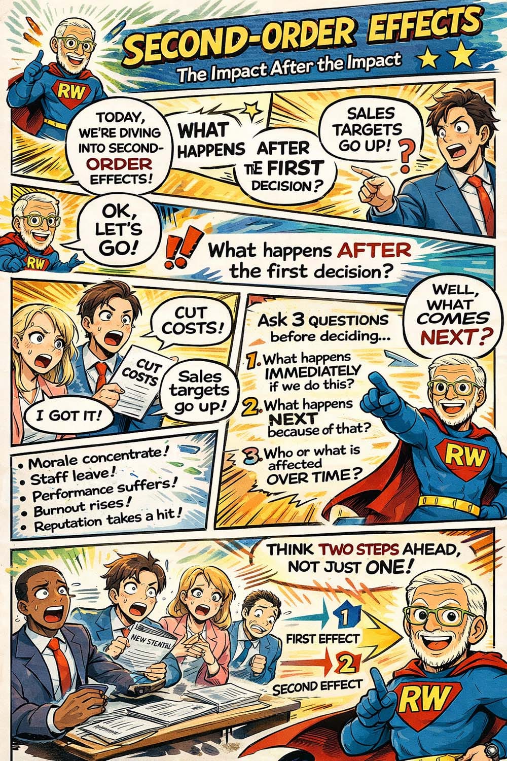 Second-order effects are the knock-on consequences of a decision.
