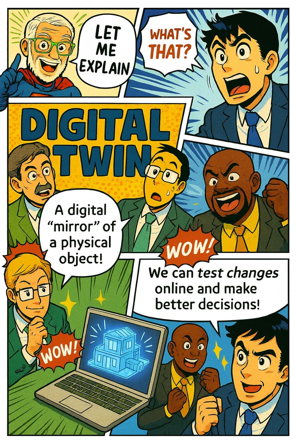Think of it as a digital mirror. It reflects how your factory, machine, or business process is working right now, and how it might behave in the future.
