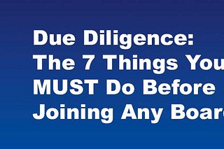 "Directors' Due Diligence: The 7 Things You MUST Do Before Joining a Board."